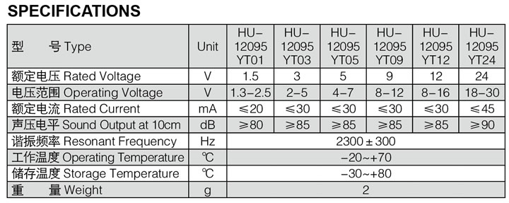 - 產(chǎn)品名稱:有源電磁式蜂鳴器12095