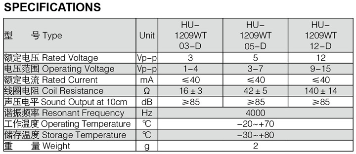 - 產(chǎn)品名稱:無(wú)源電磁式蜂鳴器1209