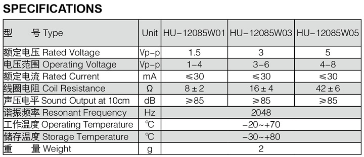 - 產(chǎn)品名稱:無源電磁式蜂鳴器12085