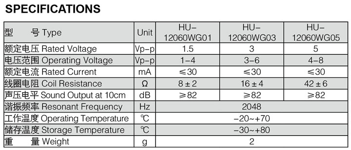 - 產(chǎn)品名稱:無源電磁式蜂鳴器12060