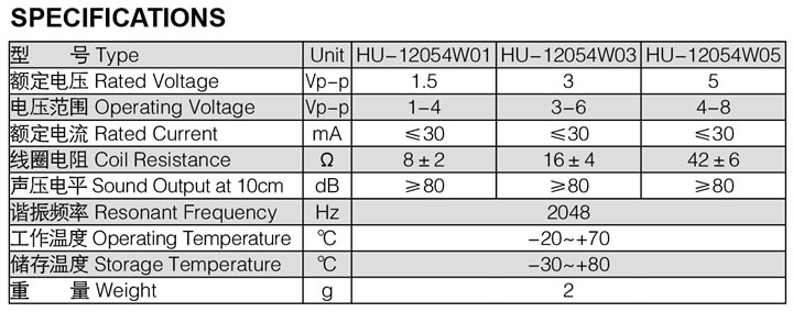- 產(chǎn)品名稱:無源電磁式蜂鳴器12054