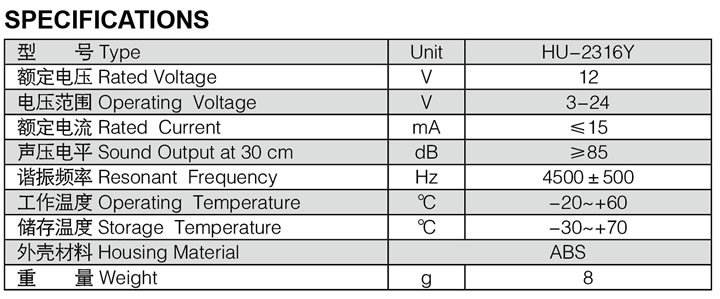 - 產(chǎn)品名稱(chēng):有源壓電式蜂鳴器2316