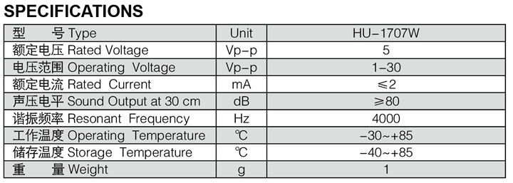 - 產(chǎn)品名稱:無源壓電式蜂鳴器1707