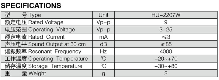 - 產(chǎn)品名稱:無源壓電式蜂鳴器2207