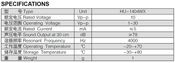 - 產(chǎn)品名稱:無源壓電式蜂鳴器1404